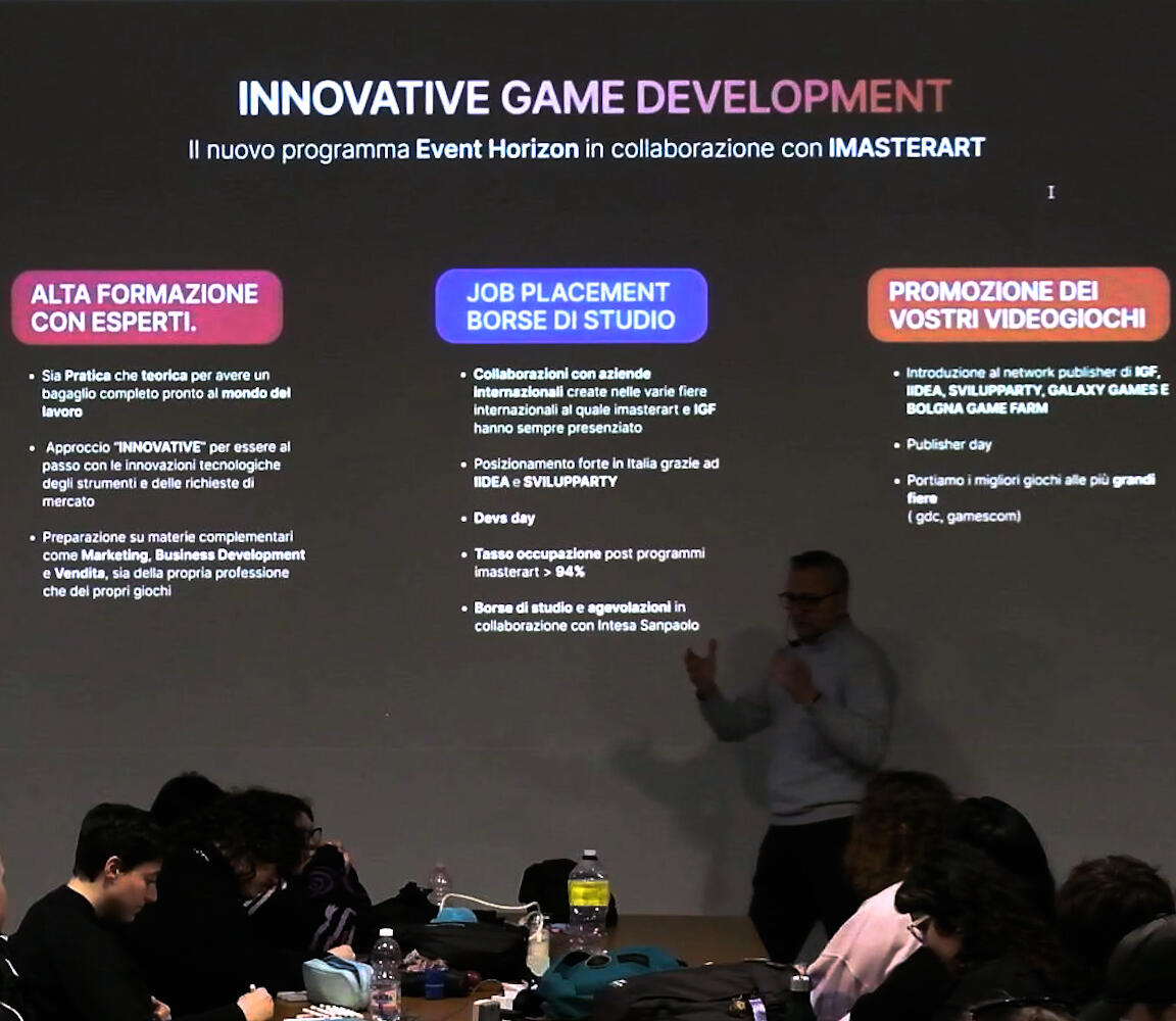 Ho scelto Event Horizon School perché cercavo un percorso pratico e mirato sul game programming, con un focus sugli strumenti e le tecnologie usate davvero nell’industria. Volevo un ambiente dove poter mettere subito le mani in pasta su progetti concreti e sperimentare. Finora l’esperienza è stata super stimolante: ho approfondito sia Unity che Unreal Engine, lavorato con artisti e game designer e affrontato sfide che mi hanno fatto crescere tantissimo, sia a livello tecnico che nel lavoro di squadra.
